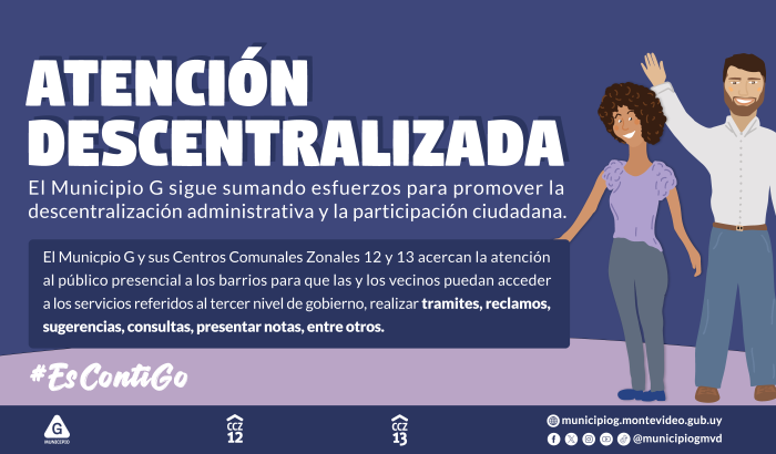 La propuesta se enmarca en una serie de oficinas descentralizadas que instala el tercer nivel de gobierno en diversos puntos barriales, con la finalidad de acercar servicios a las personas. Durante el último año el Municipio G ha desarrollado oficinas descentralizadas en Nuevo París, San Bartolo, Abayubá, Complejo América, Peñarol, Cuchilla Pereira, Pueblo Ferrocarril, Prado Norte, Riberas del Miguelete, Colón y Melilla.