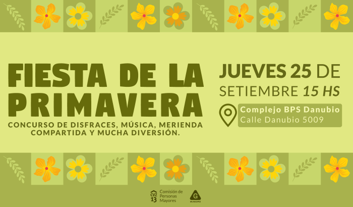 El próximo jueves 25 de setiembre, a las 15:00 horas, se desarrollará la Fiesta de la Primavera, que tendrá lugar en el Complejo BPS Danubio, ubicado en la calle Danubio 5008.